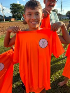 Na tarde desta sexta-feira (30/01/26), o Grêmio Pedro Rufino retomou oficialmente suas ações sociais com a entrega de mais um jogo de camisetas esportivas às crianças do Bairro Espírito Santo, participantes das atividades coordenadas pelo voluntário Marcos Cáceres.